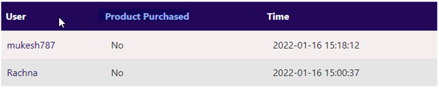 So the above report shows that 2 people registered but still to buy the product. If it shows “YES” under “Product Purchased” it means your referrals have purchased the product and you can claim 20% referral fees.