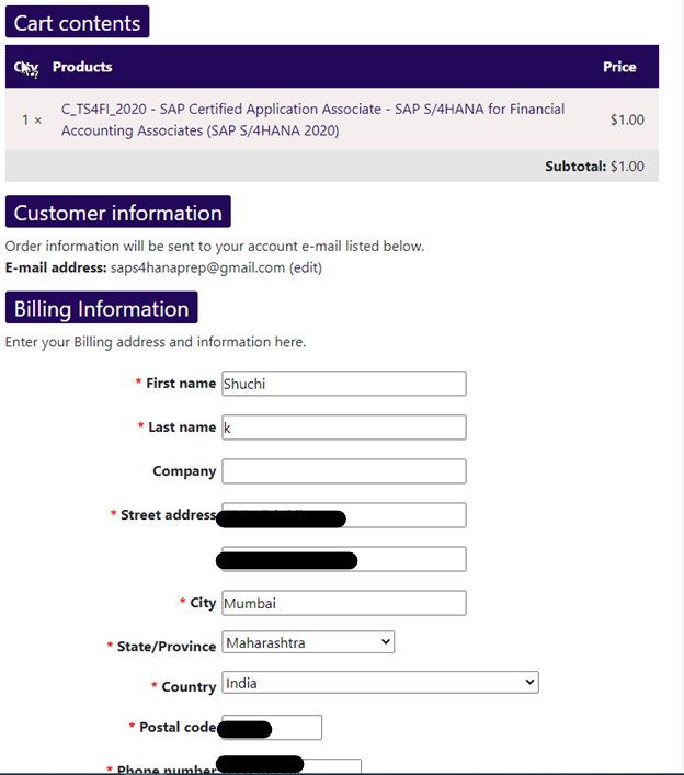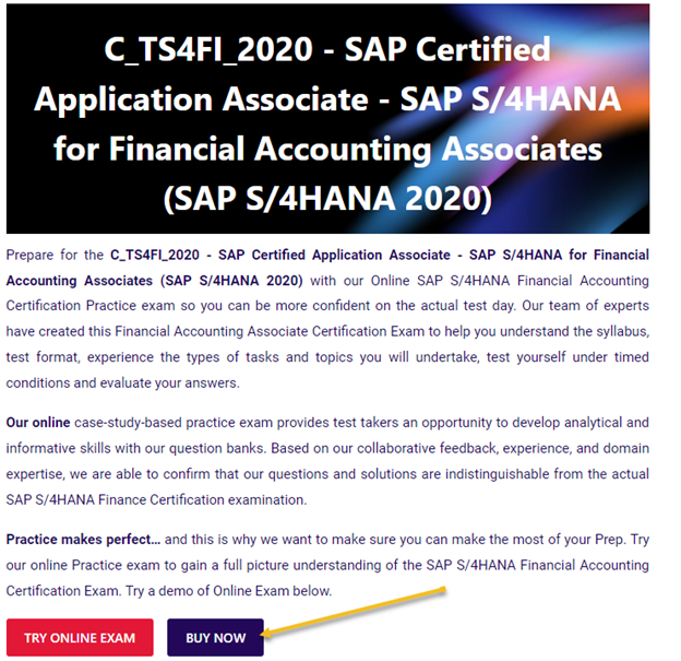 Step-1: Select the SAP module you want to purchase. Here in this example, we are choosing C_TS4FI_2020 – Financial Accounting.