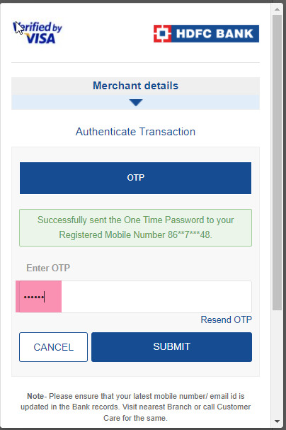 After the review click on “SUBMIT ORDER” >> and the moment you submit , you will receive an OTP to your registered mobile number.