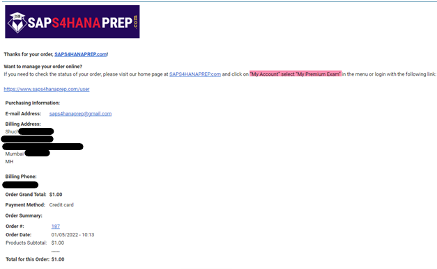 The last step- Go back to saps4hanaprep.com and click on “My Account” and then to “My