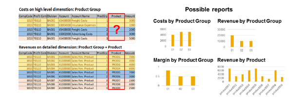 Data is not always posted and available on the lowest possible level. For example, revenue is posted on the lowest level, but costs are not always available on that same level: